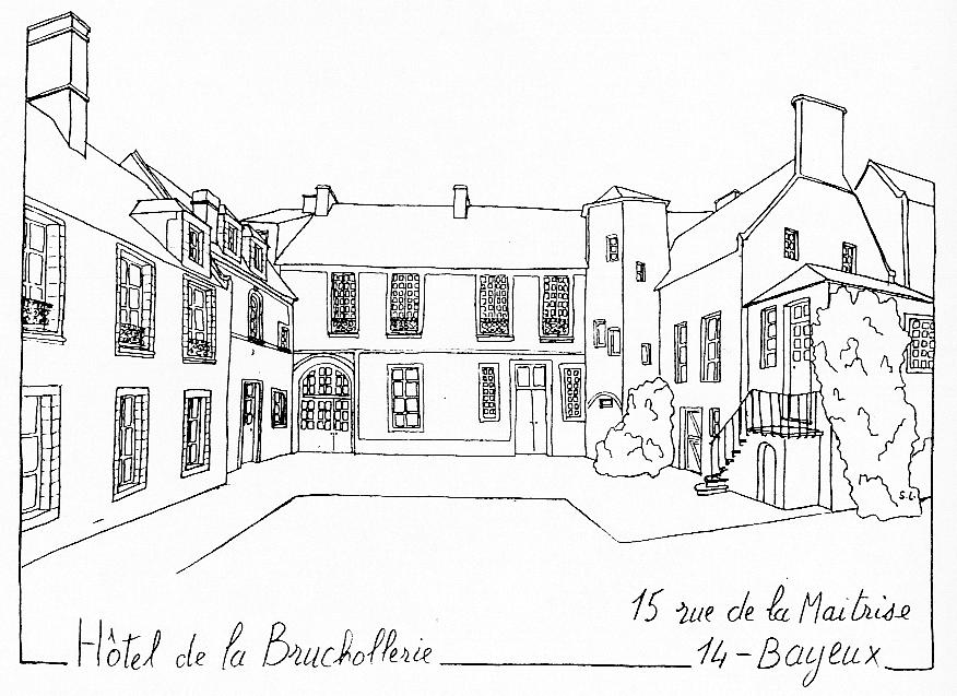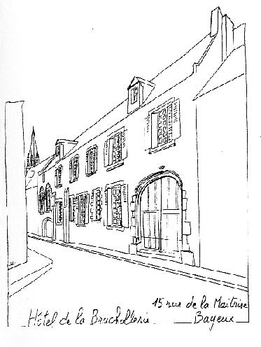Cette maison canoniale dite « prébendale de Ste-Honorine » , avait été donnée pour accueillir les enfants de choeur de l'époque, a été vendue à la révolution au sieur Duroray puis est acquise en 1841 par Antoine Yver de la BRUCHOLLERIE, fils de Jean-Joseph et d'Angélique CLOUET, et Clémentine de BELLY de BUSSY. Percepteur à Pont-Audemer, il y avait pris sa retraite et y meurt le 08.10.1848 à 58 ans. C'est là qu'ils avaient marié leur fille, Marie Pauline YVER de la BRUCHOLLERIE, le 12.08.1844, avec Pierre-Louis-Edouard, Baron de LARMINAT, fils de Jean-Charles-Nicolas et d'Victorine MARRIER de BOISD'HYVER. La messe est célébrée, à côté, en la Cathédrale de Bayeux. Héritée par Marie de LARMINAT, religieuse (o Blois 28.11.1848, + Noyon 14.6.1877) , elle est vendue à Pierre de Cussy. En 1997, elle est acquise par le Dr Luc Bouvier qui en fait son domicile et son cabinet médical. Elle est ornementée de 2 fenêtres ogivales, d'un bandeau à 4 feuilles du XIV° et de 2 grandes lucarnes. |