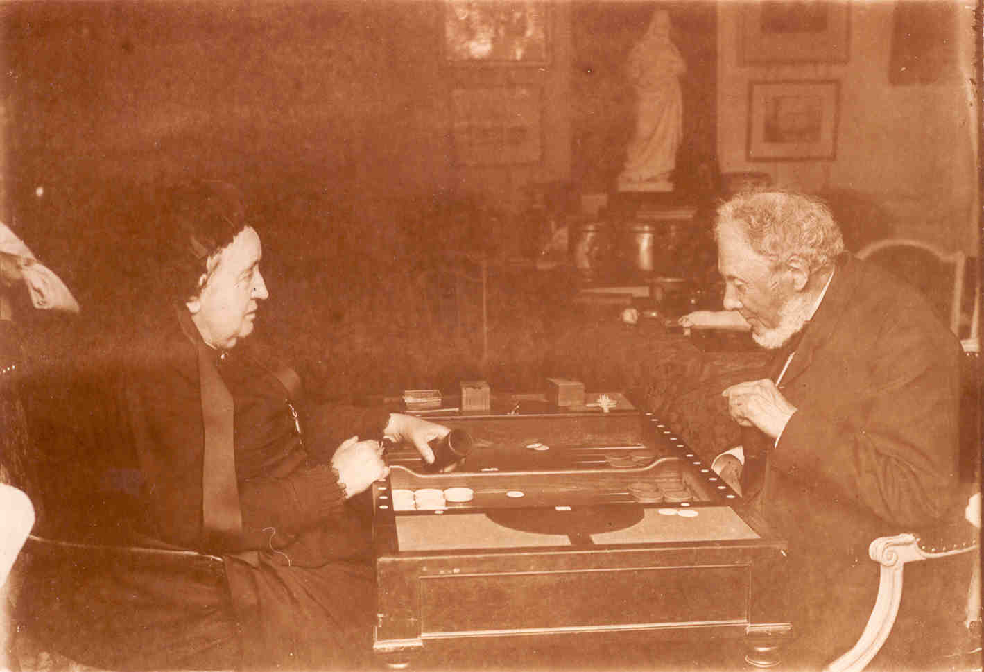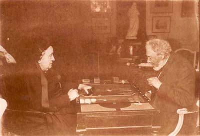 Pauline YVER de la BRUCHOLLERIE jouant au jacquet avec son mari, Pierre-Louis-Edouard de LARMINAT. Cliquer ici pour voir l'image en grand (plus long à télécharger).